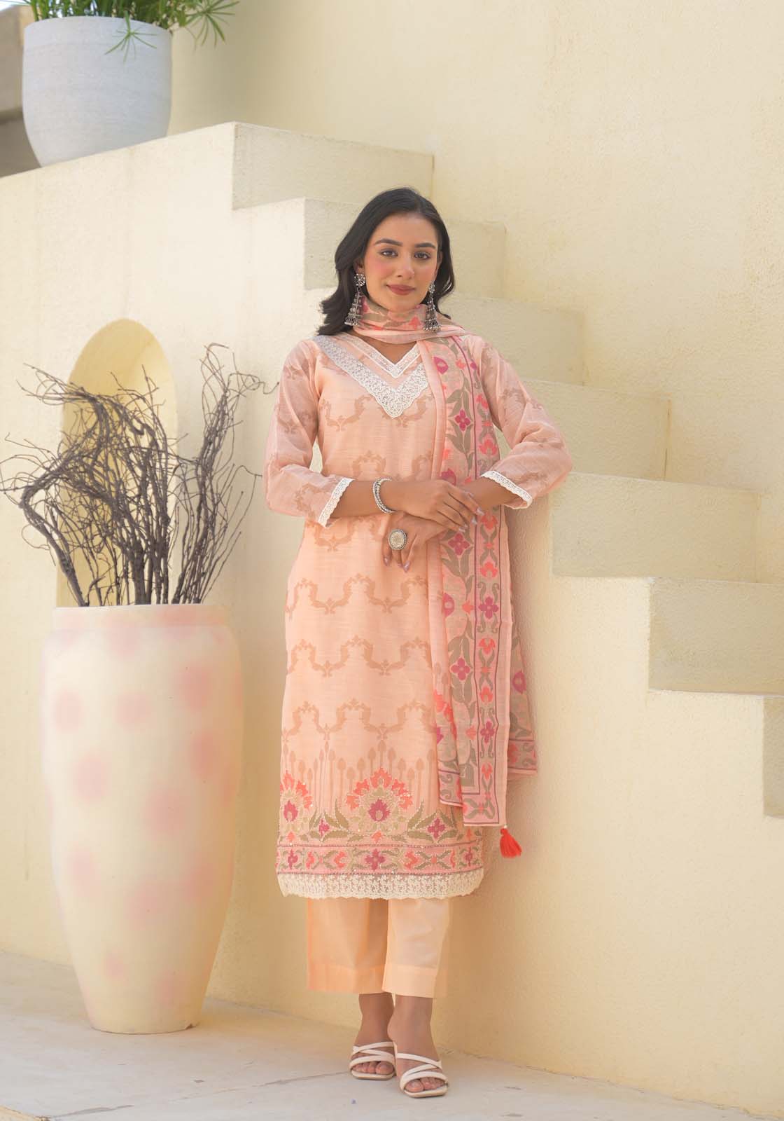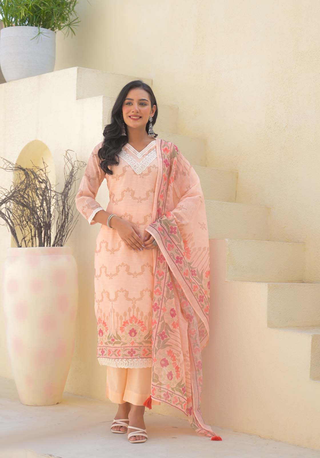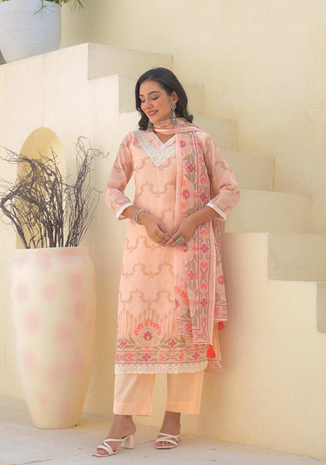 Label Khoj Women Lilen kurta, trouser and dupptta set