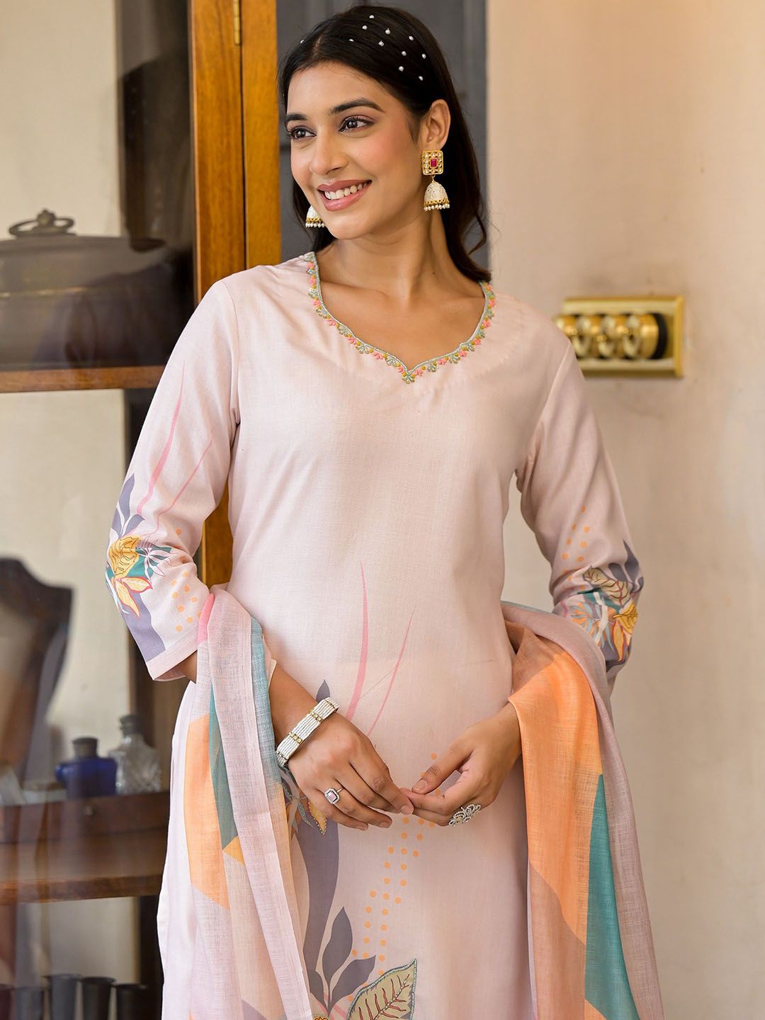 Label khoj women lilen printed kurta set