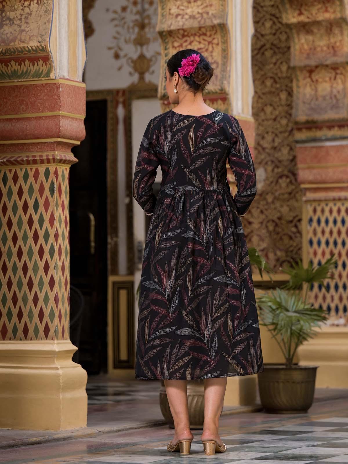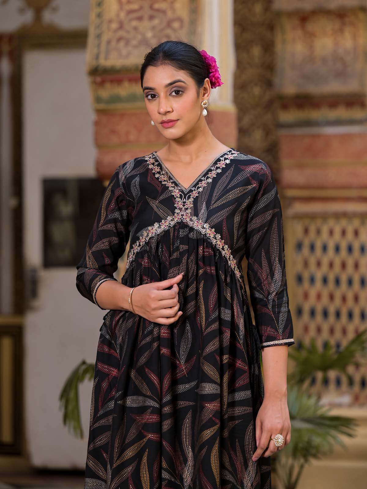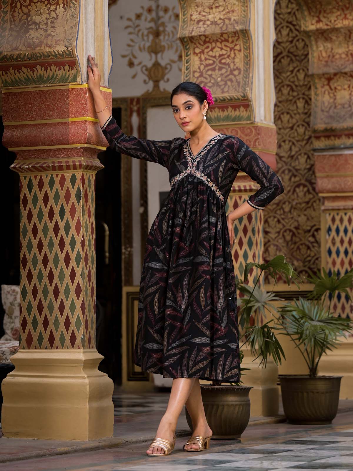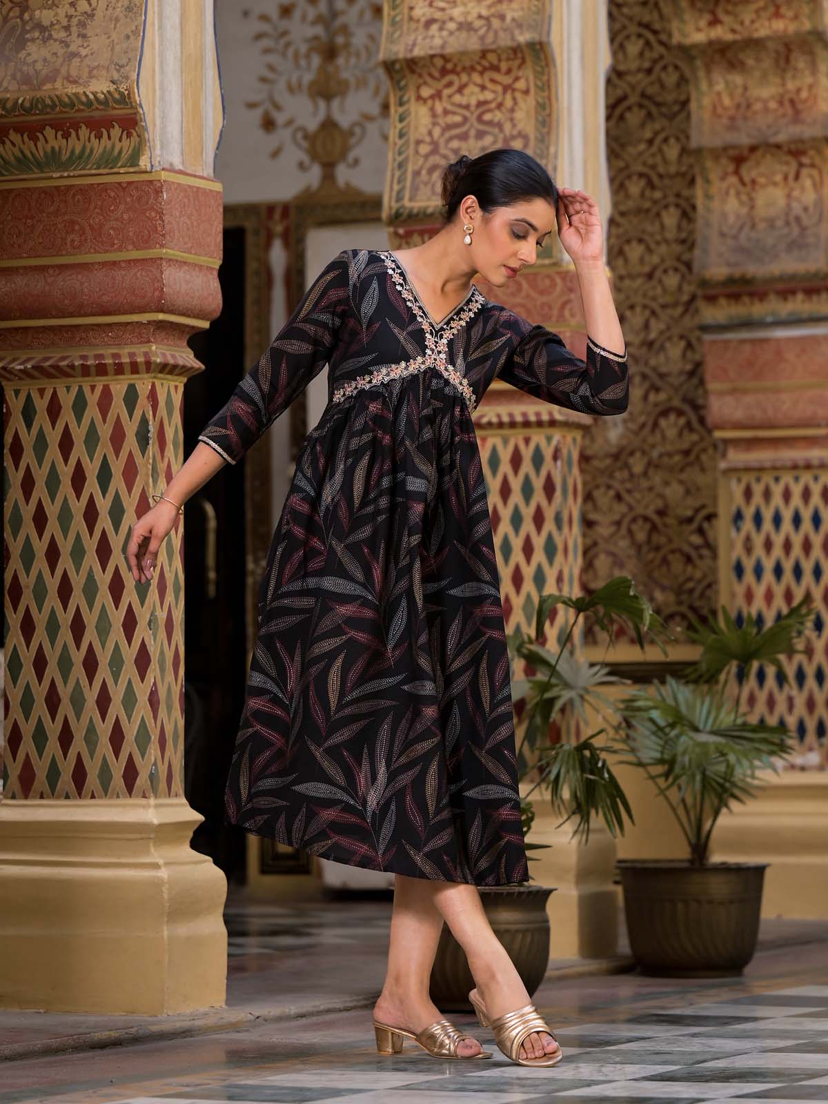 Label Khoj Women Modal Silk fabric and embroidery Printed Dress