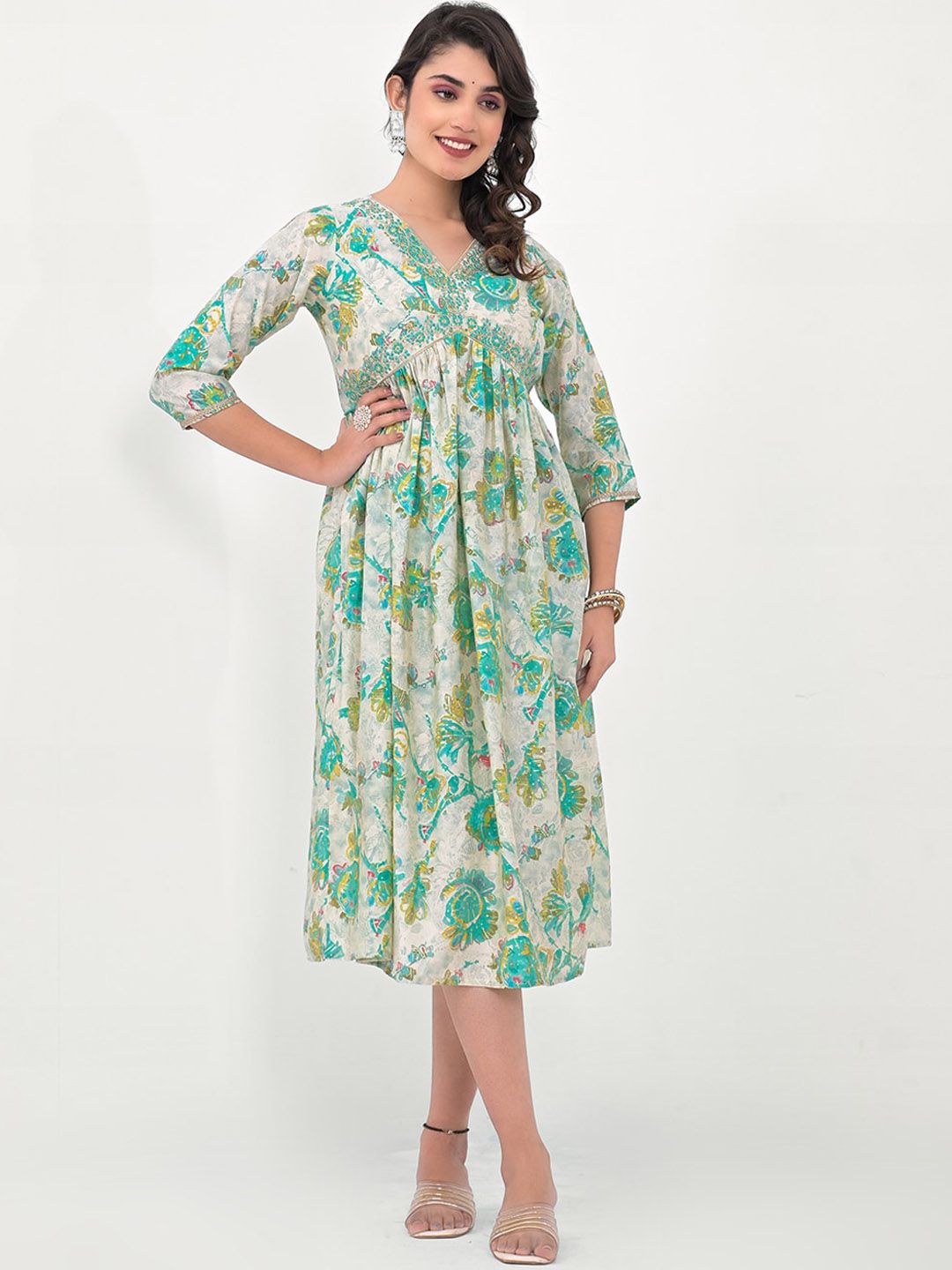 Label Khoj Women Modal Silk fabric and embroidery Printed Dress