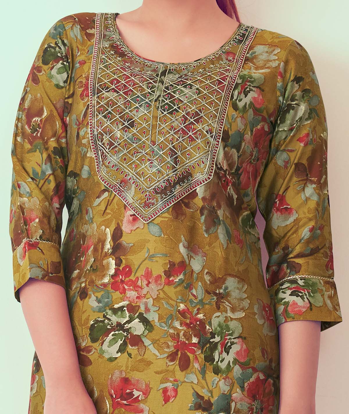 Label Khoj Women Modal silk Kurta ,trouser and dupptta set