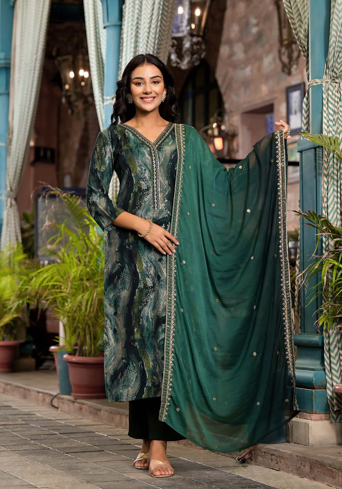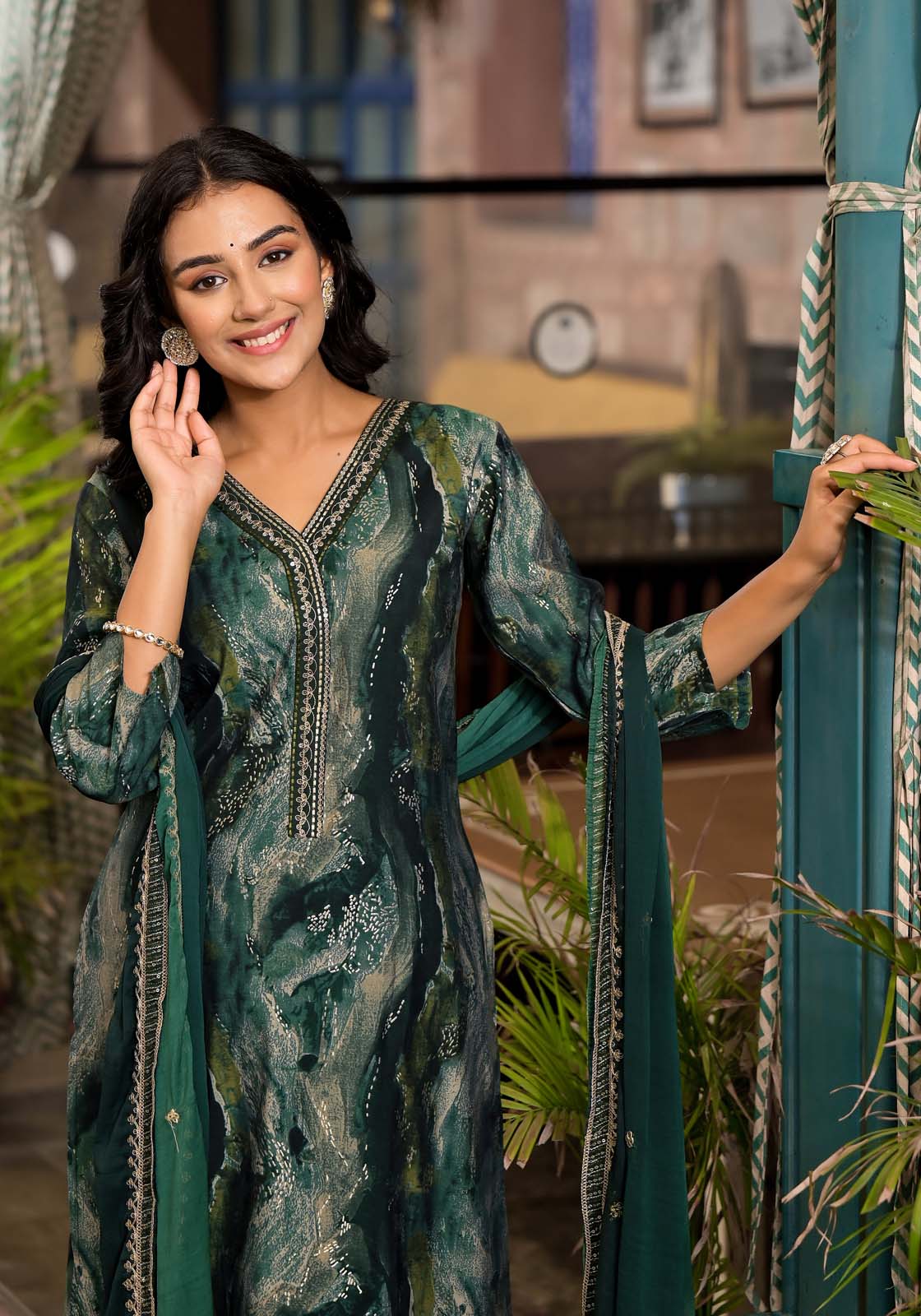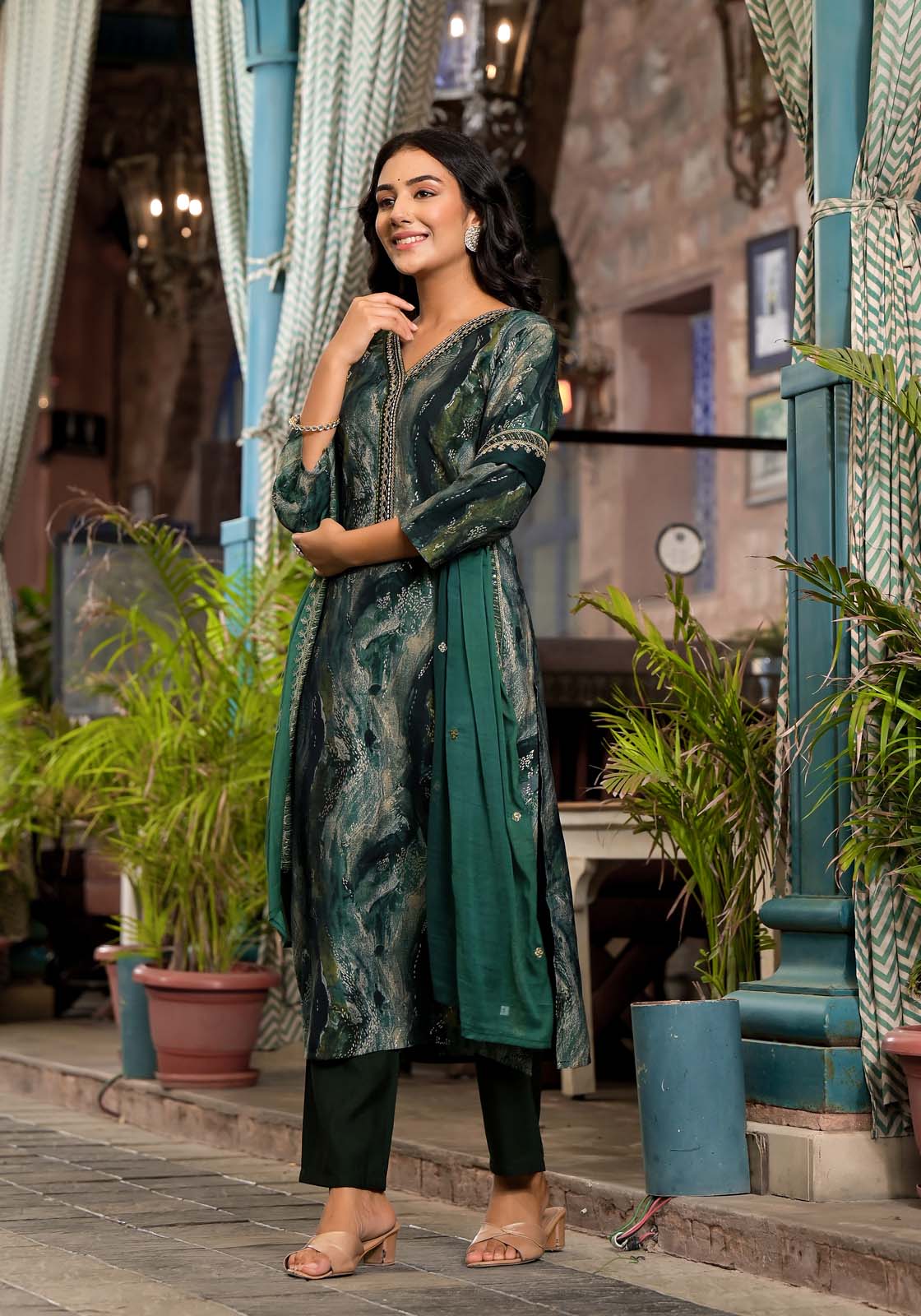 Label Khoj Women Modal silk Kurta ,trouser and dupptta set