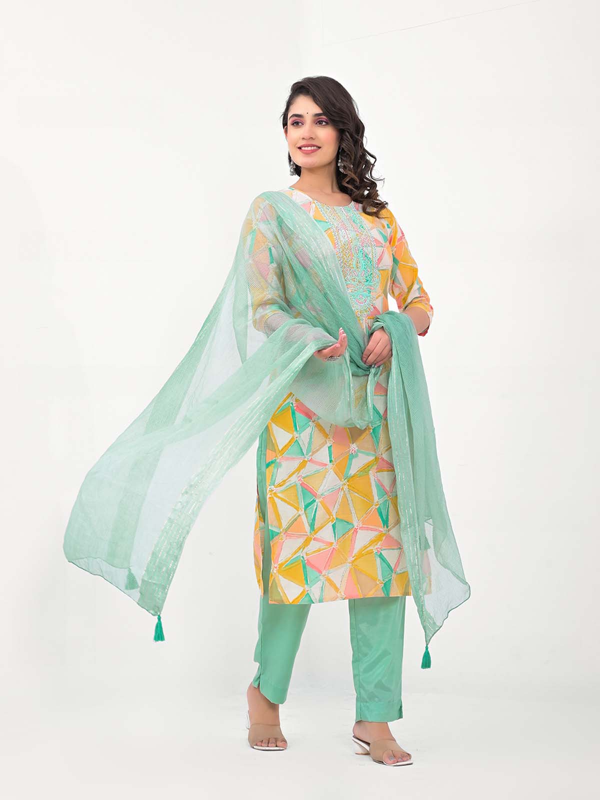 Label khoj Women Printed Kurta with Trousers & Dupatta