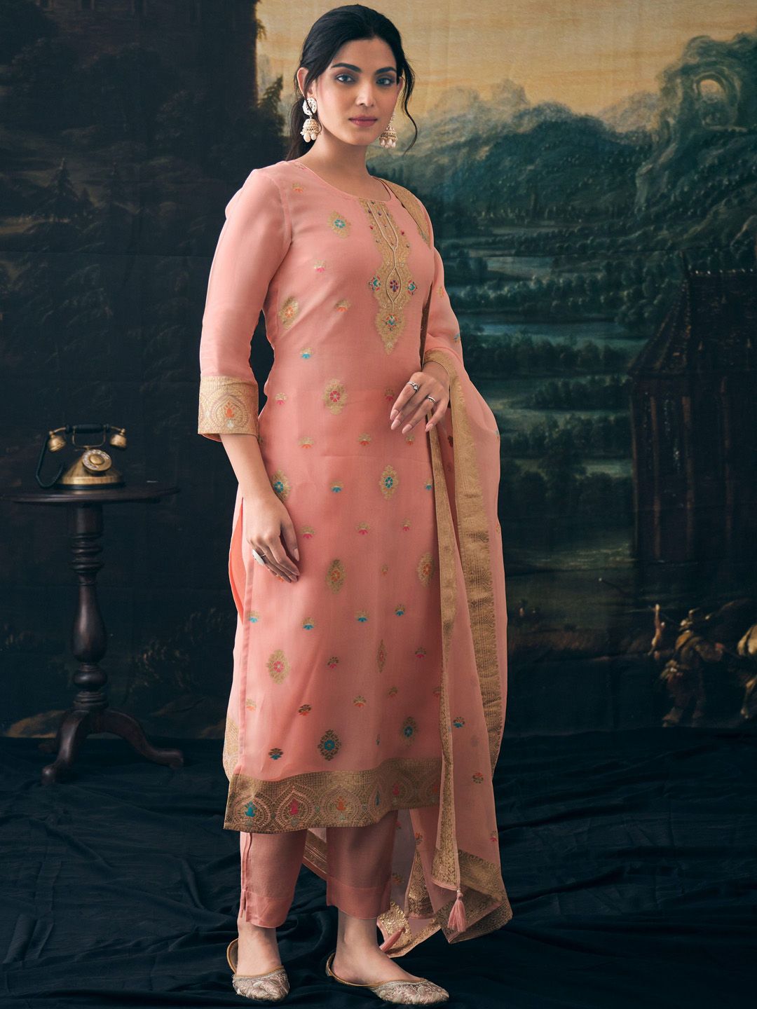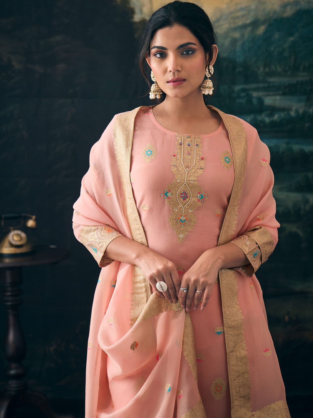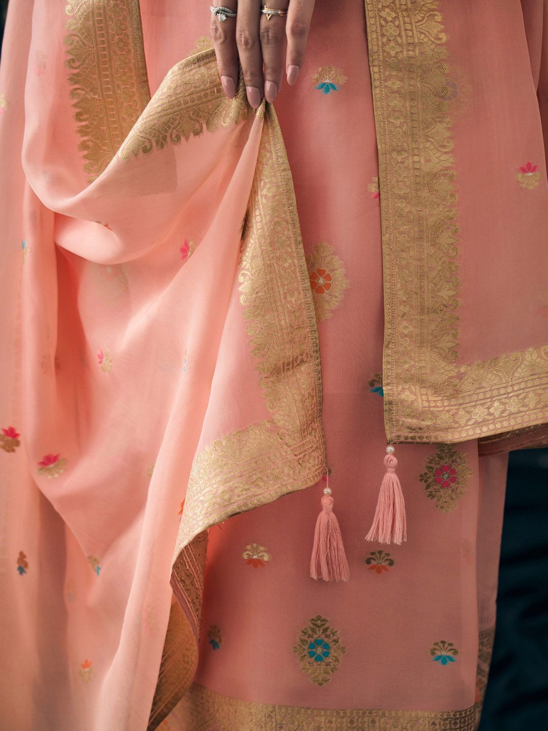 Label khoj Pure viscose Georgette silk with heavy Meena and handwork kurta set