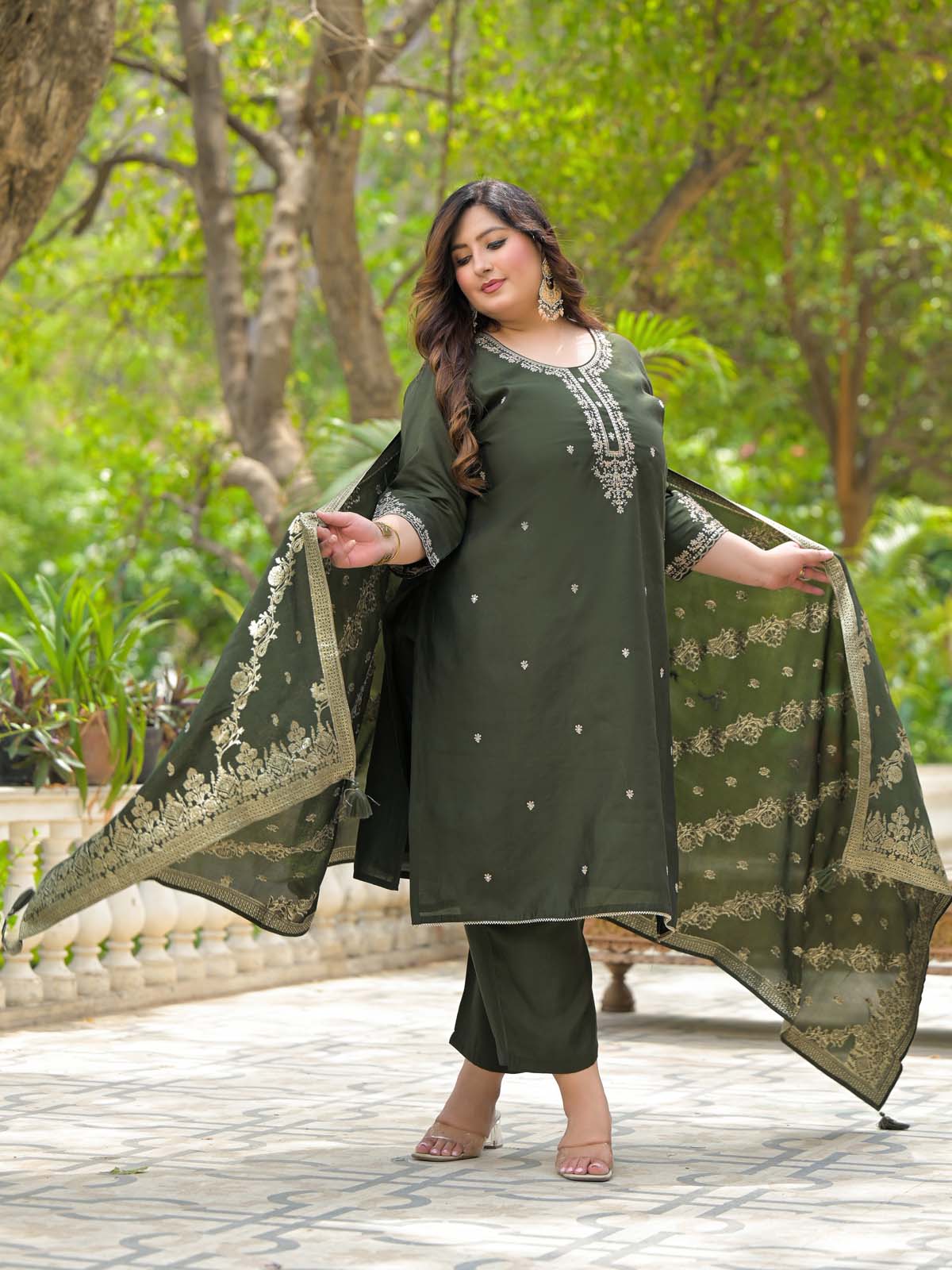 Label Khoj Women Roman Silk Embroidery Work Voilet Color Kurta & Bottom With Dupatta Set