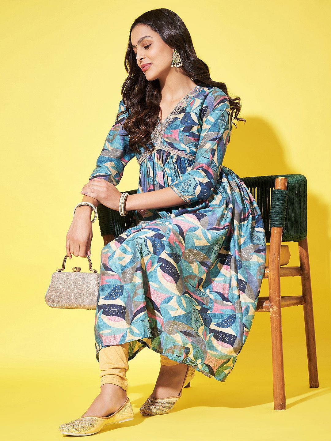 Label Khoj Women Silk Blend Alia Cut Kurta Dress