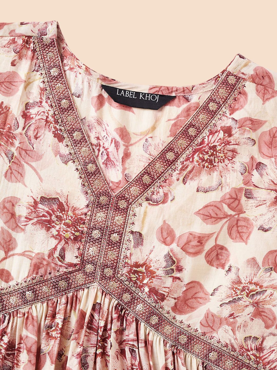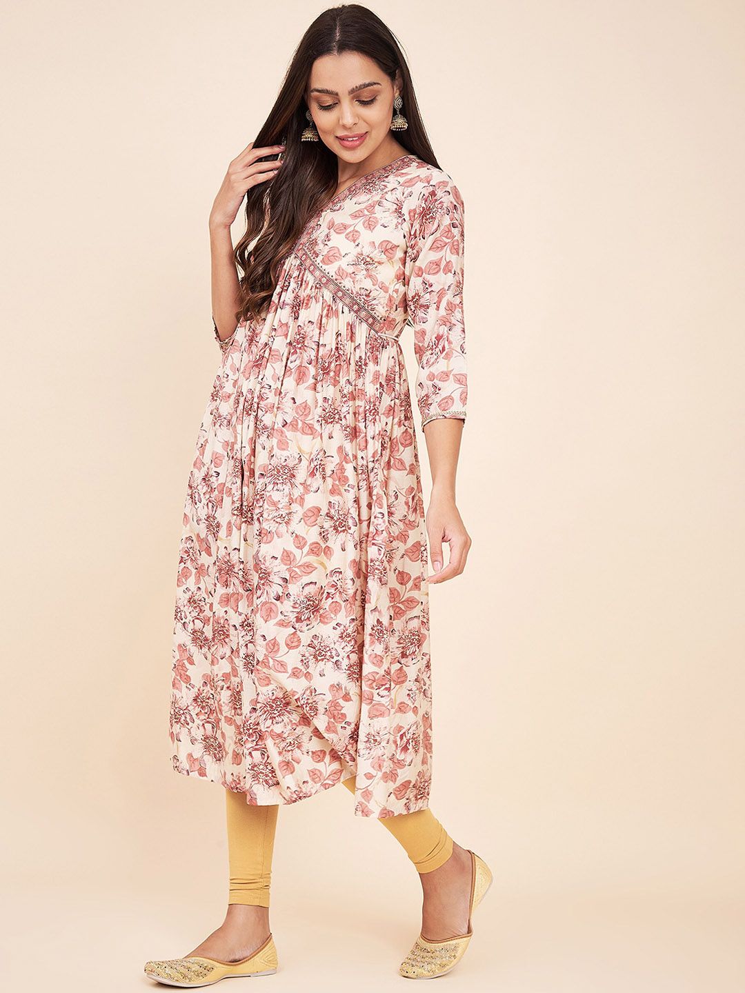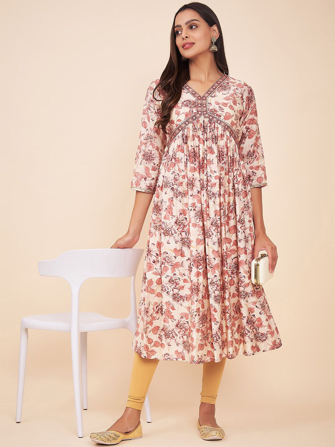 • Cream & pink ethnic dress