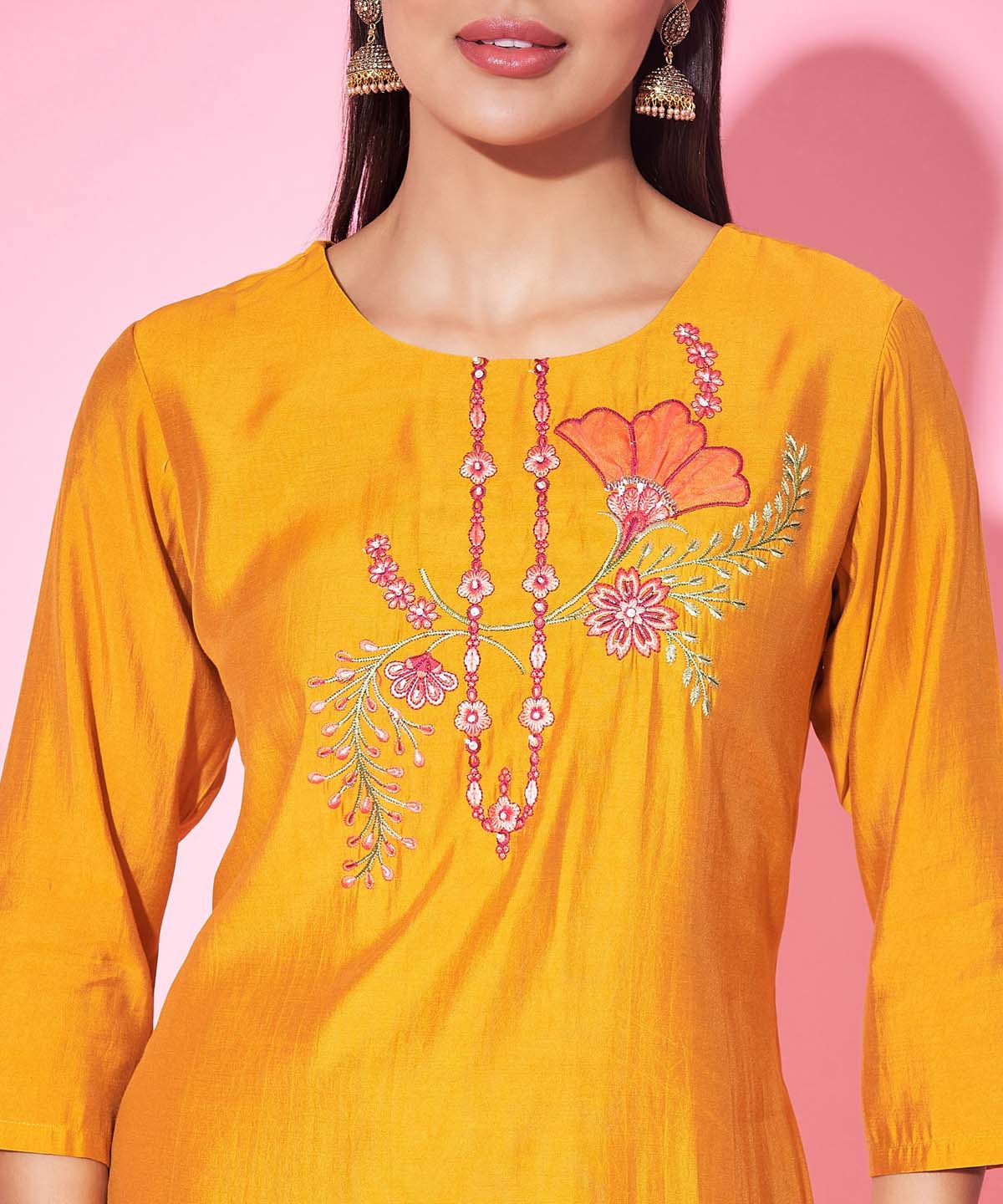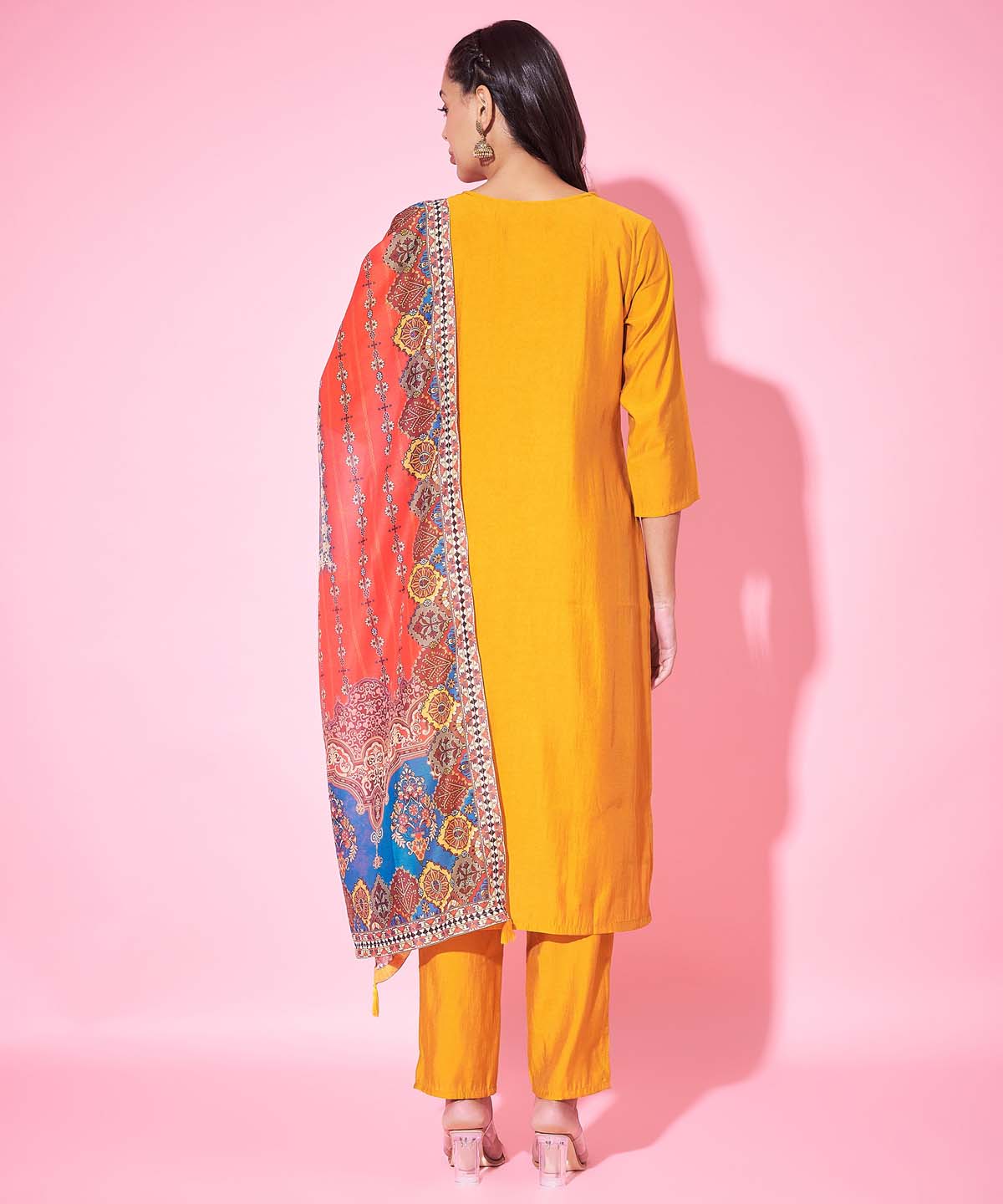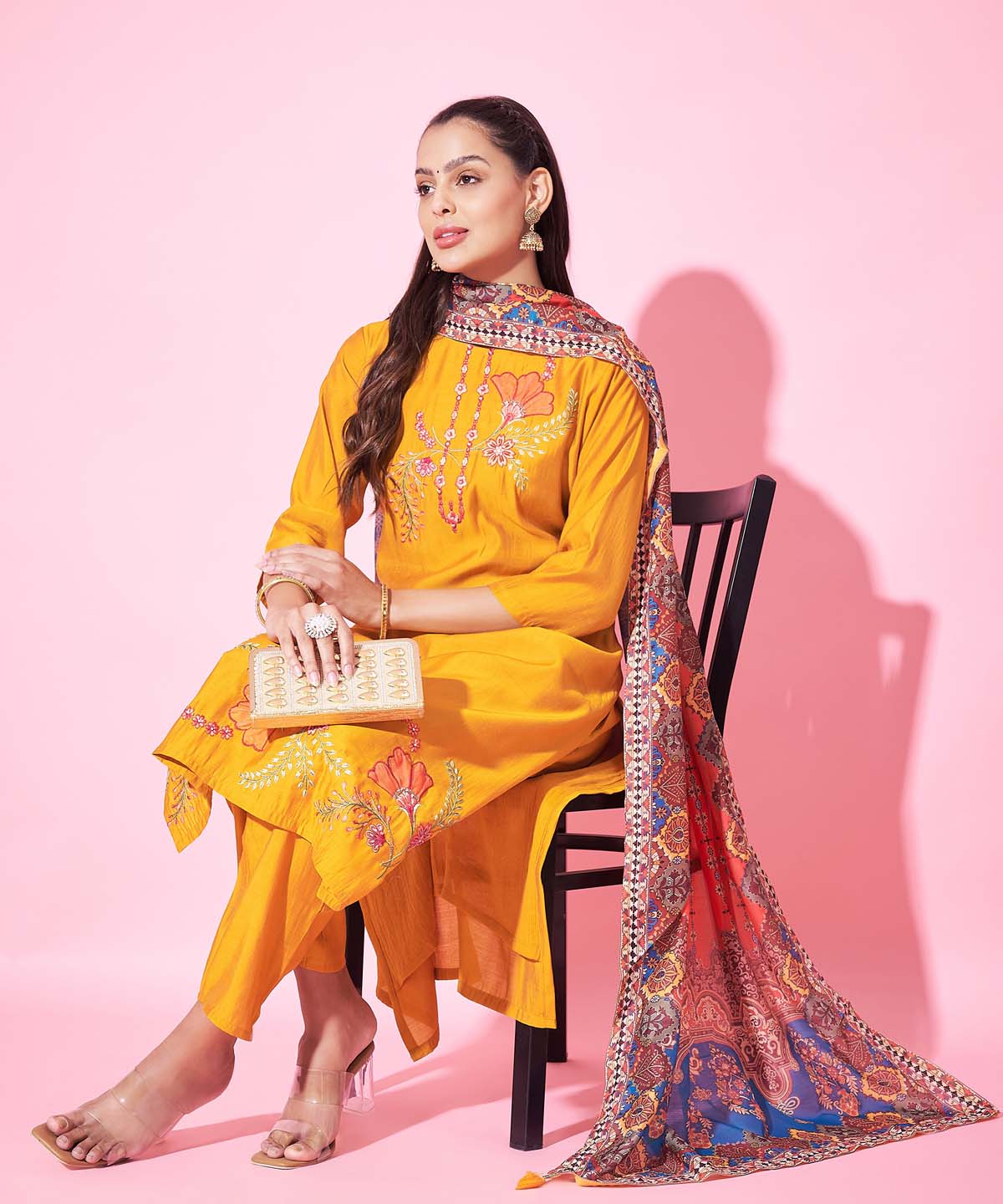 Label Khoj Women Silk Blend and embroidery Kurta with Trousers & Dupatta