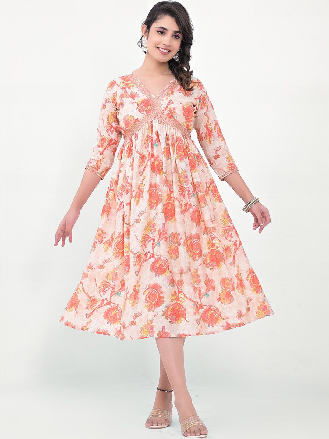 Label Khoj Women Silk Blend and embroidery Printed Dress