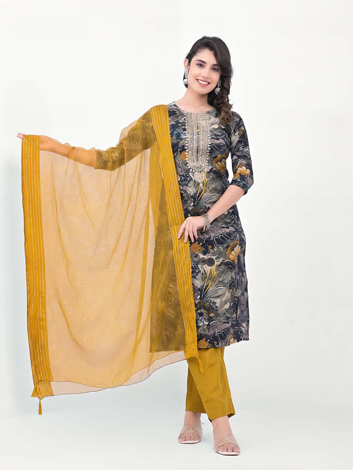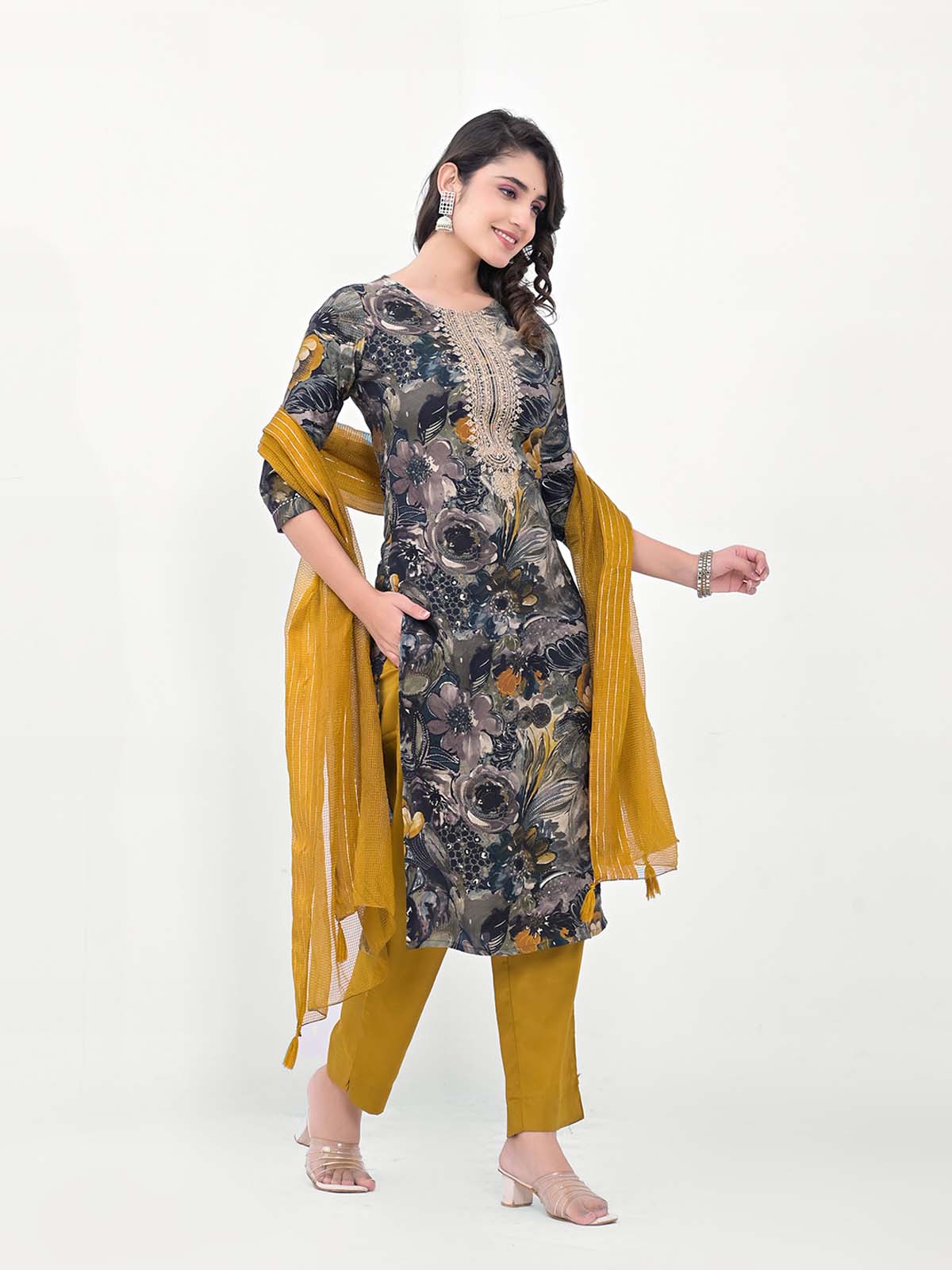 Label Khoj Women Silk blend Kurta ,trouser and dupptta set