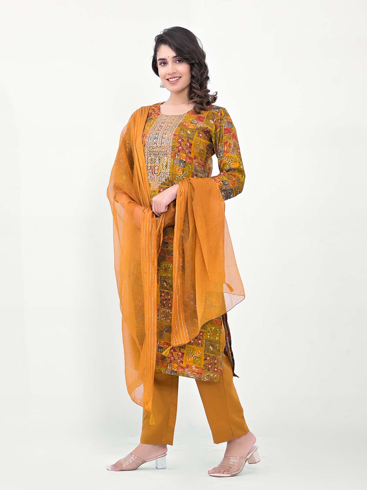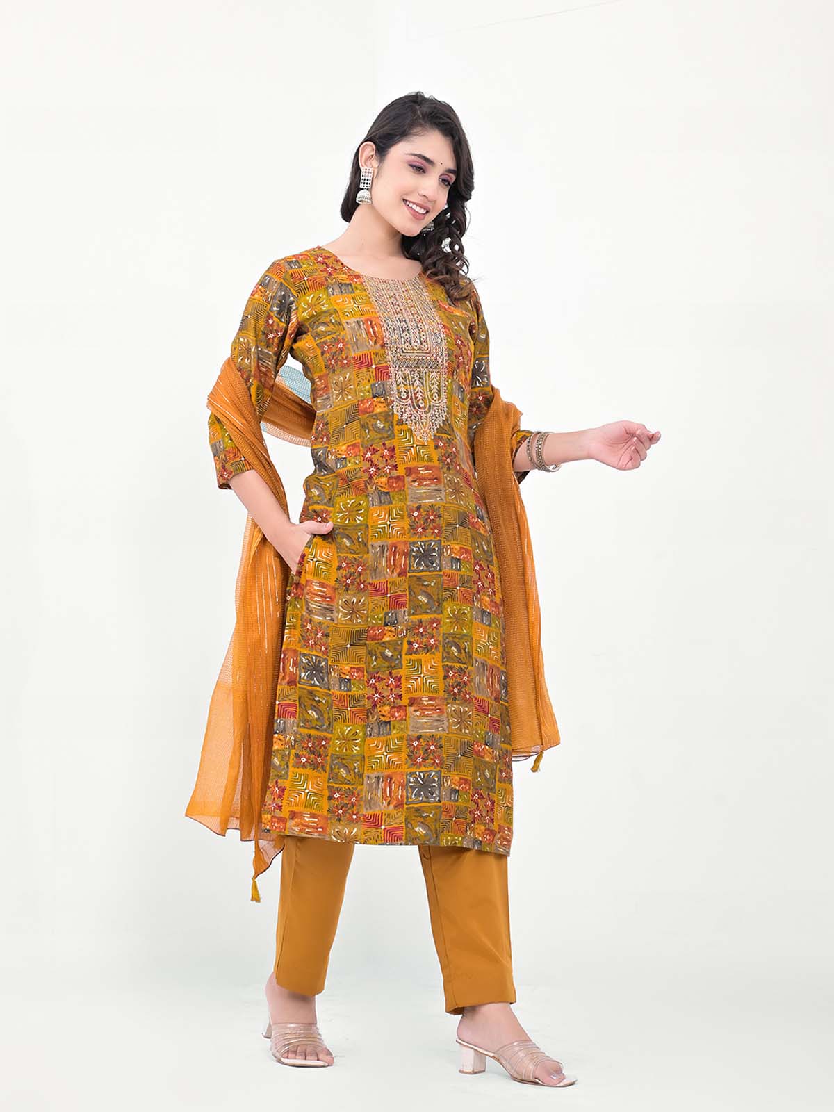 Label Khoj Women Silk blend Kurta ,trouser and dupptta set