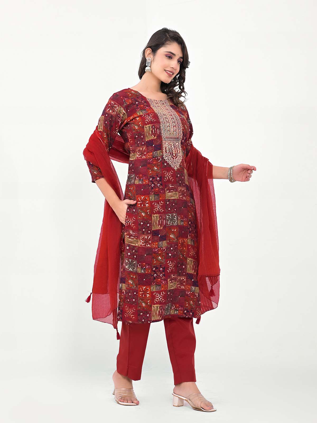 Label Khoj Women Silk blend Kurta ,trouser and dupptta set