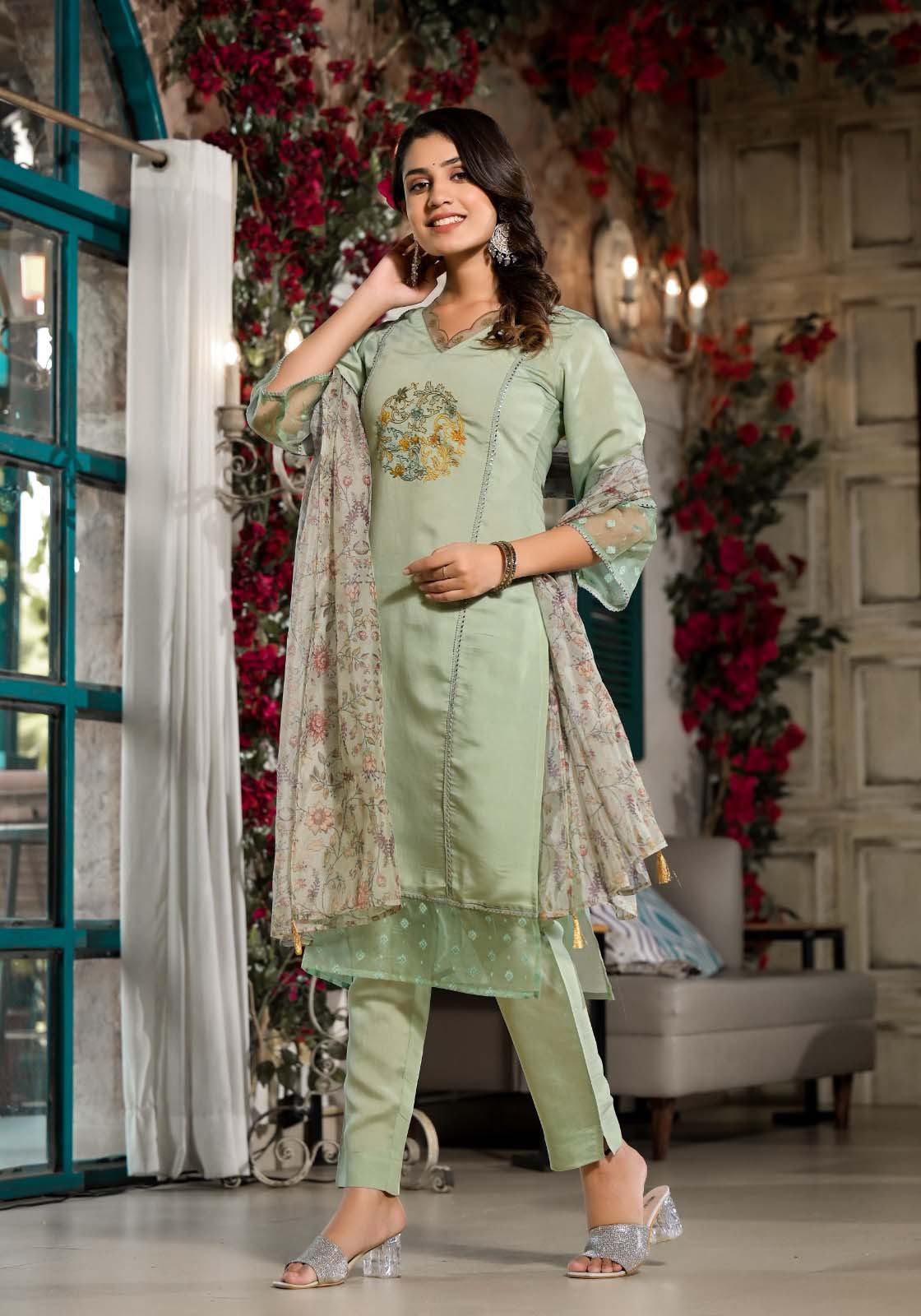 Label Khoj Women Silk blend Kurta ,trouser and dupptta set
