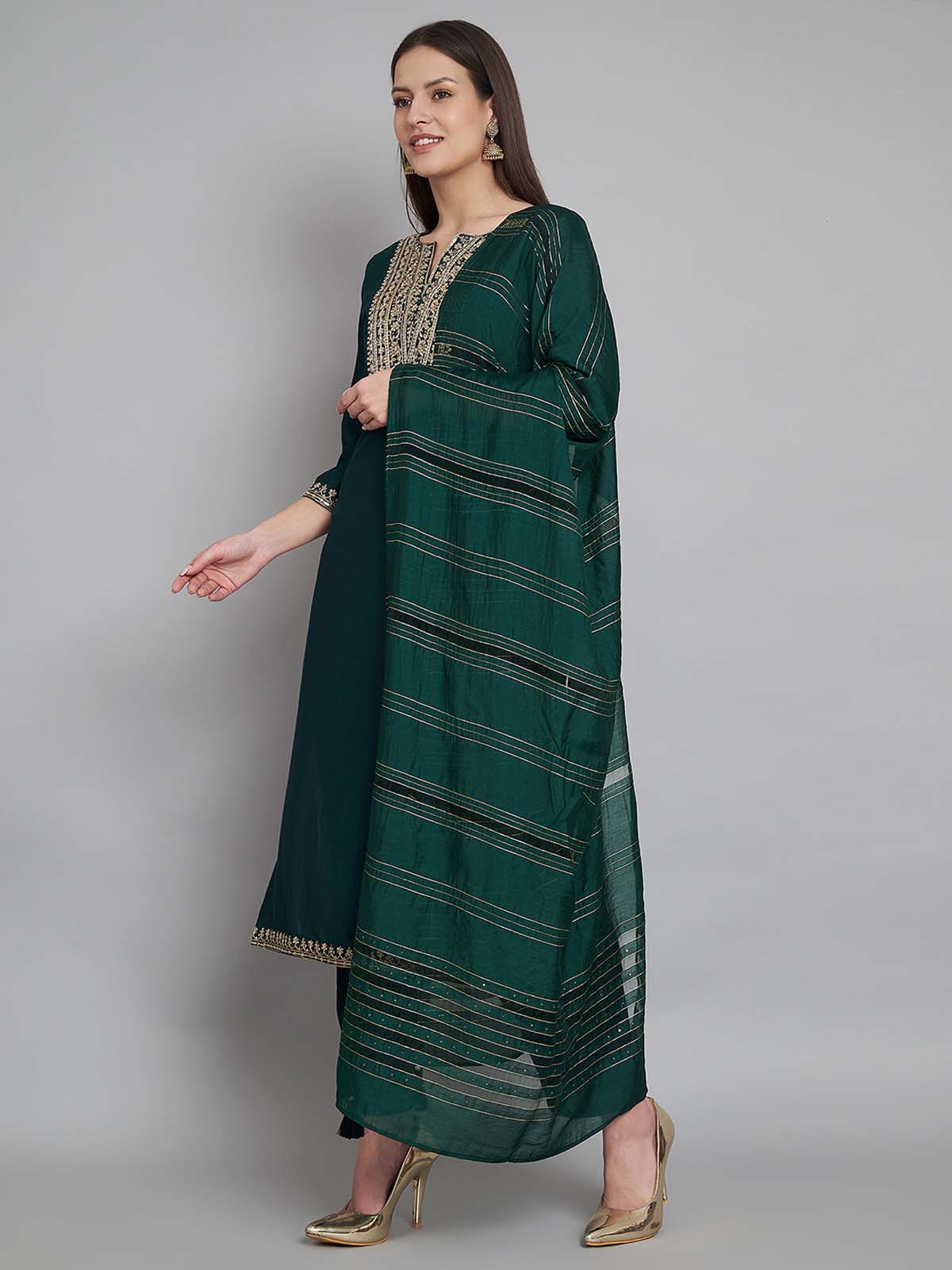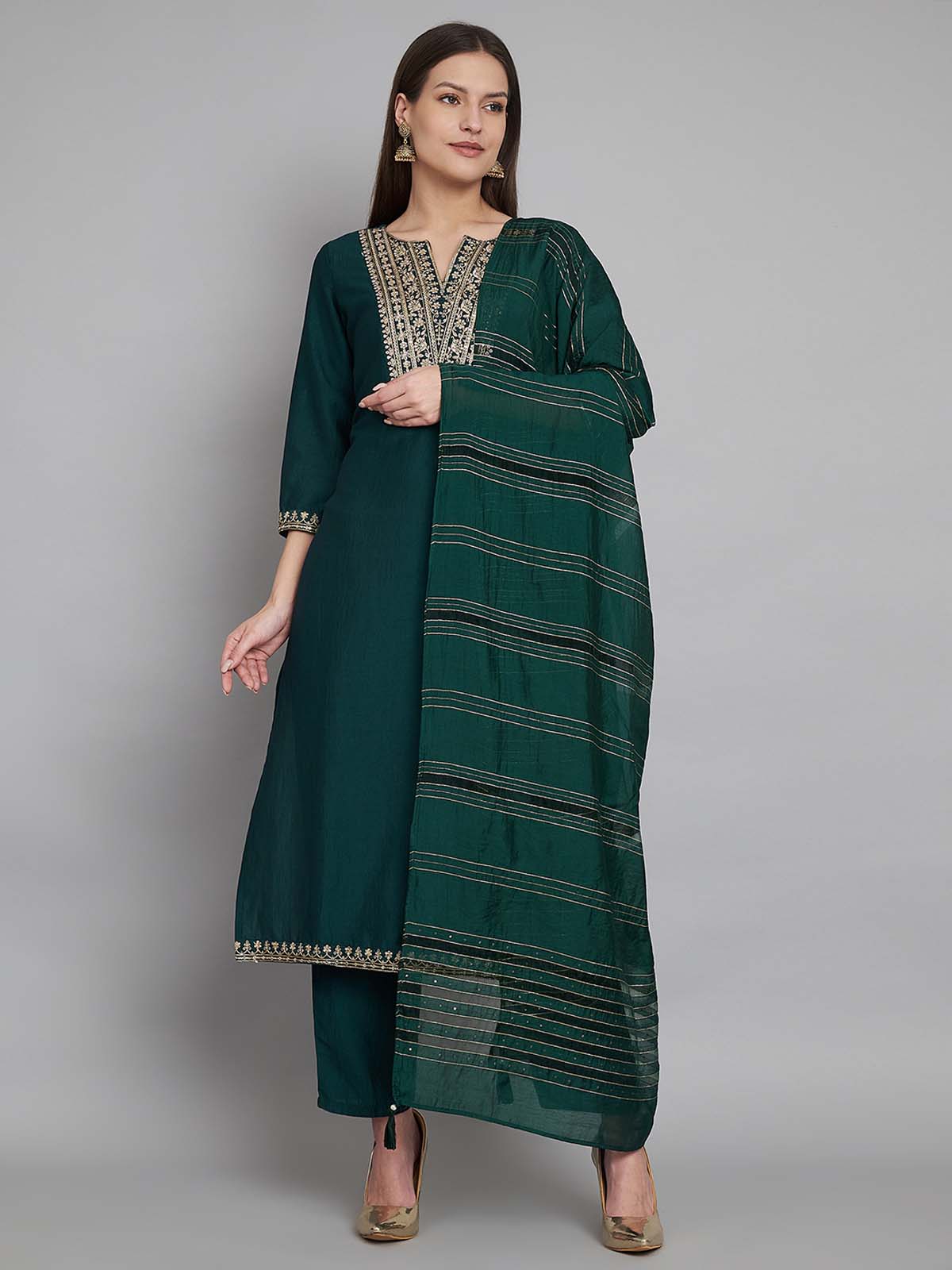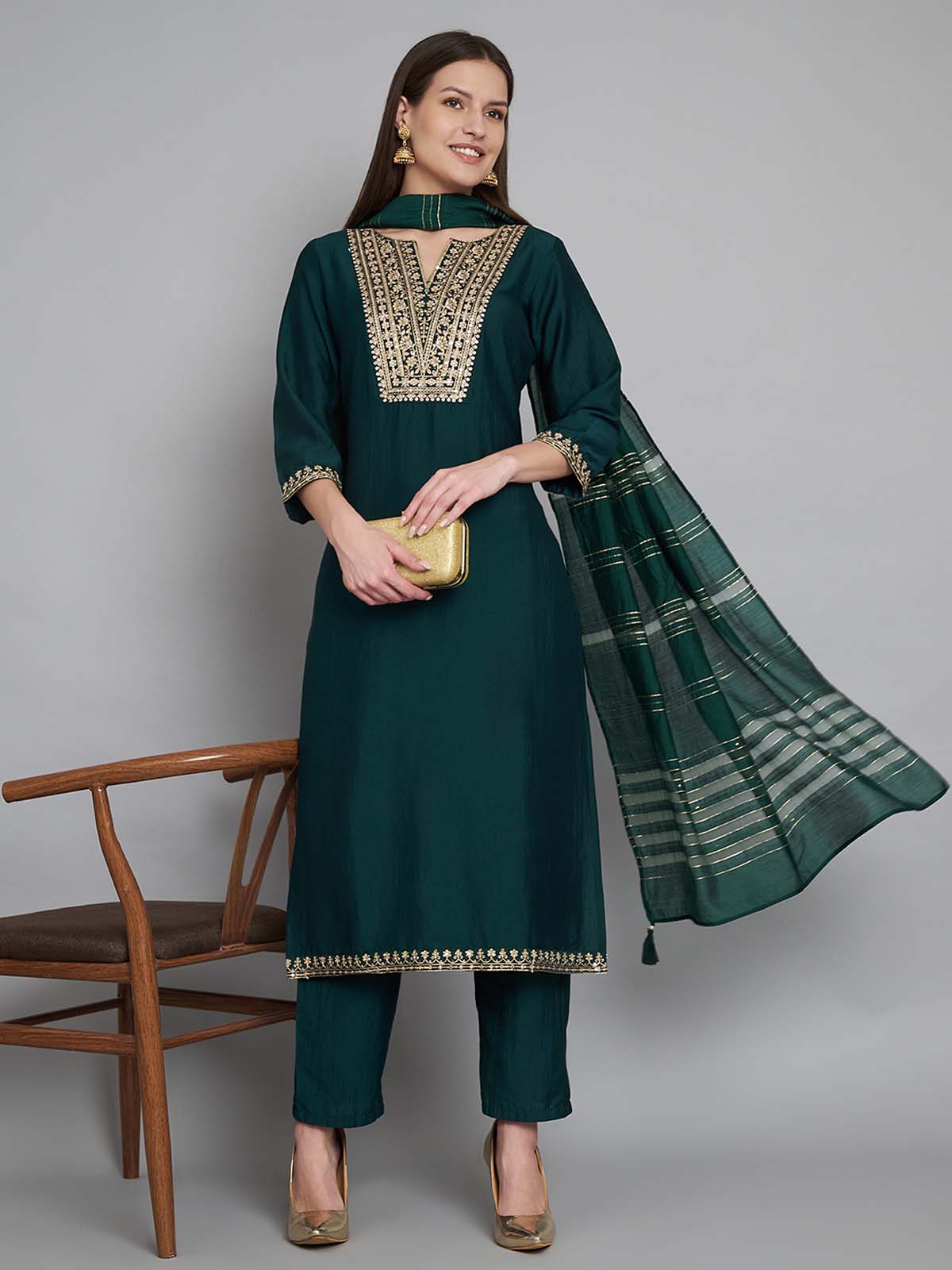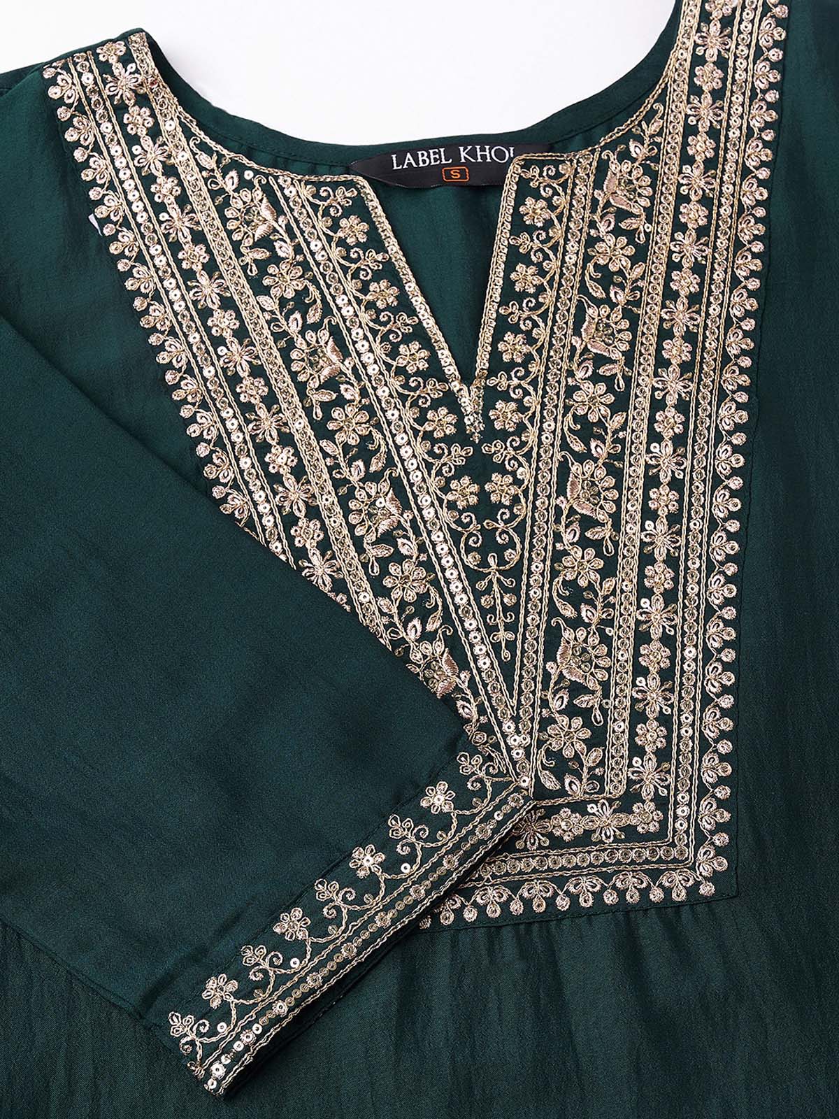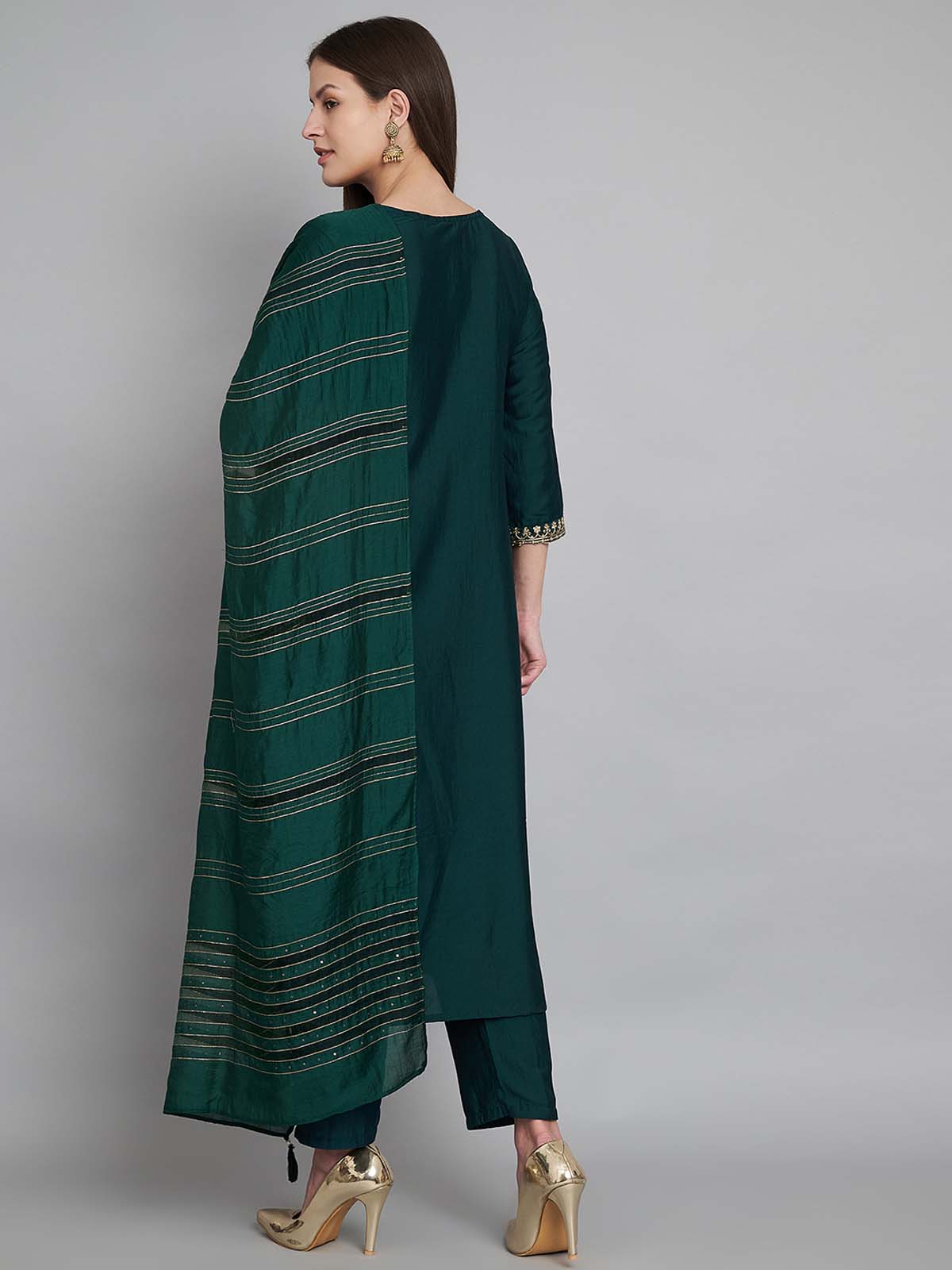 Label Khoj Women Silk blend Kurta ,trouser and dupptta set