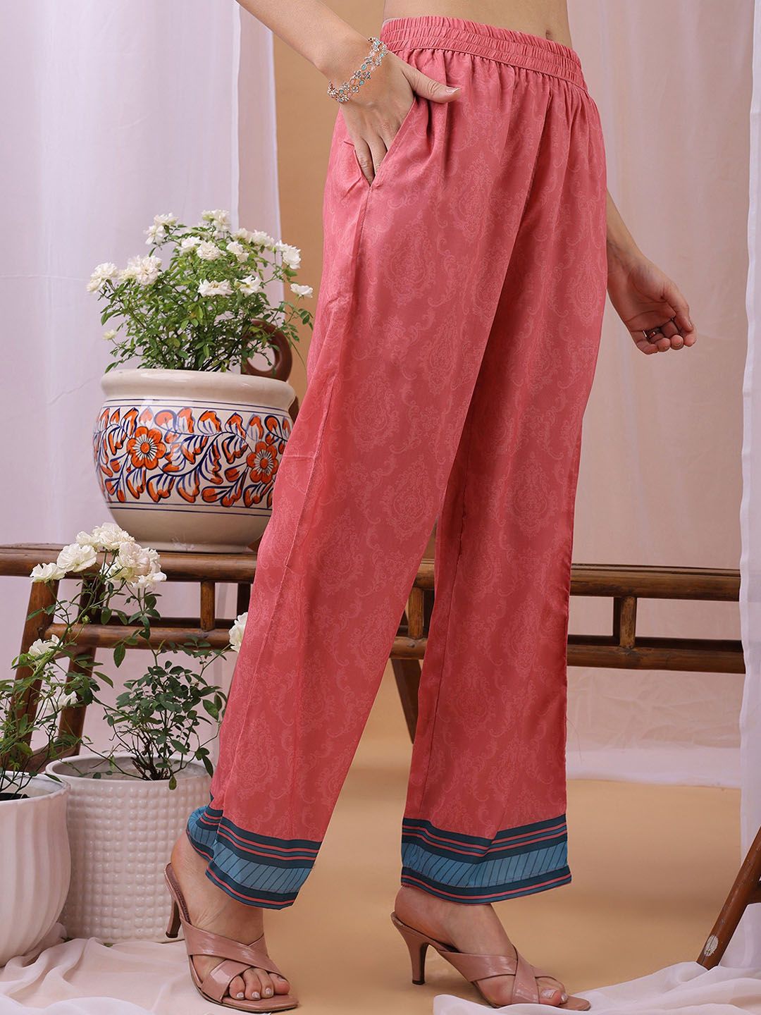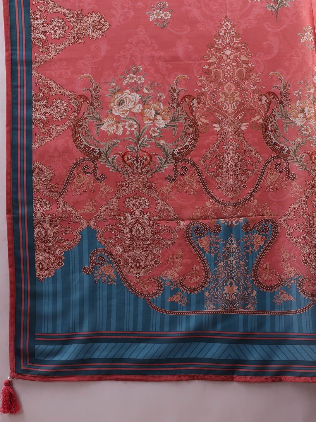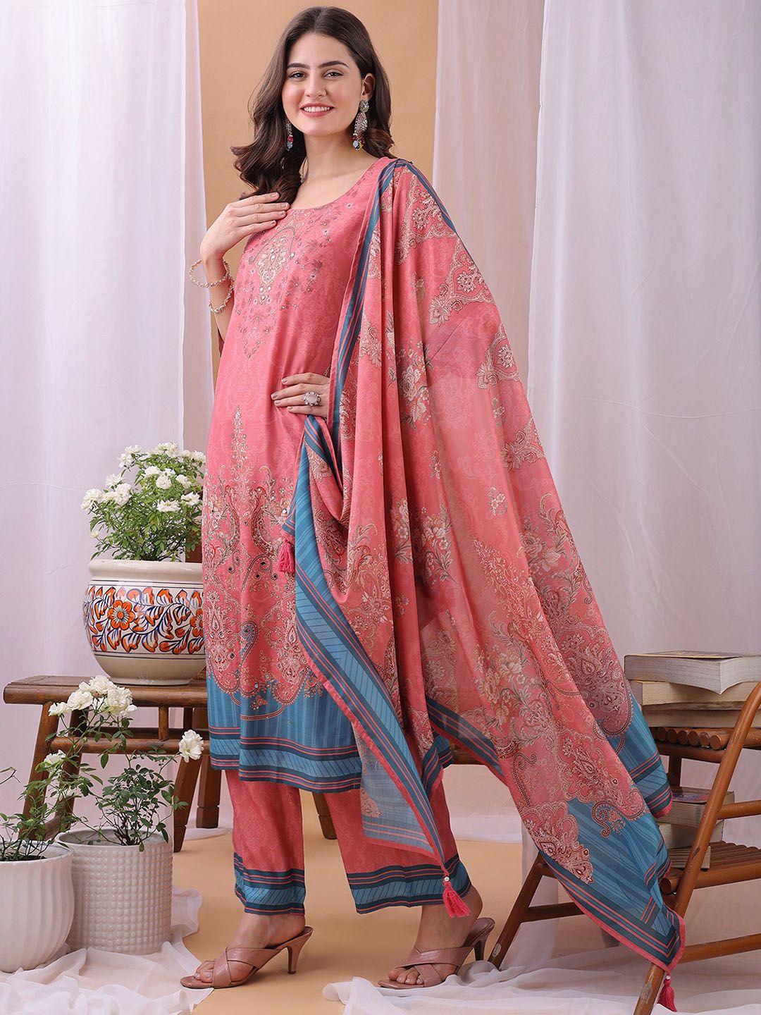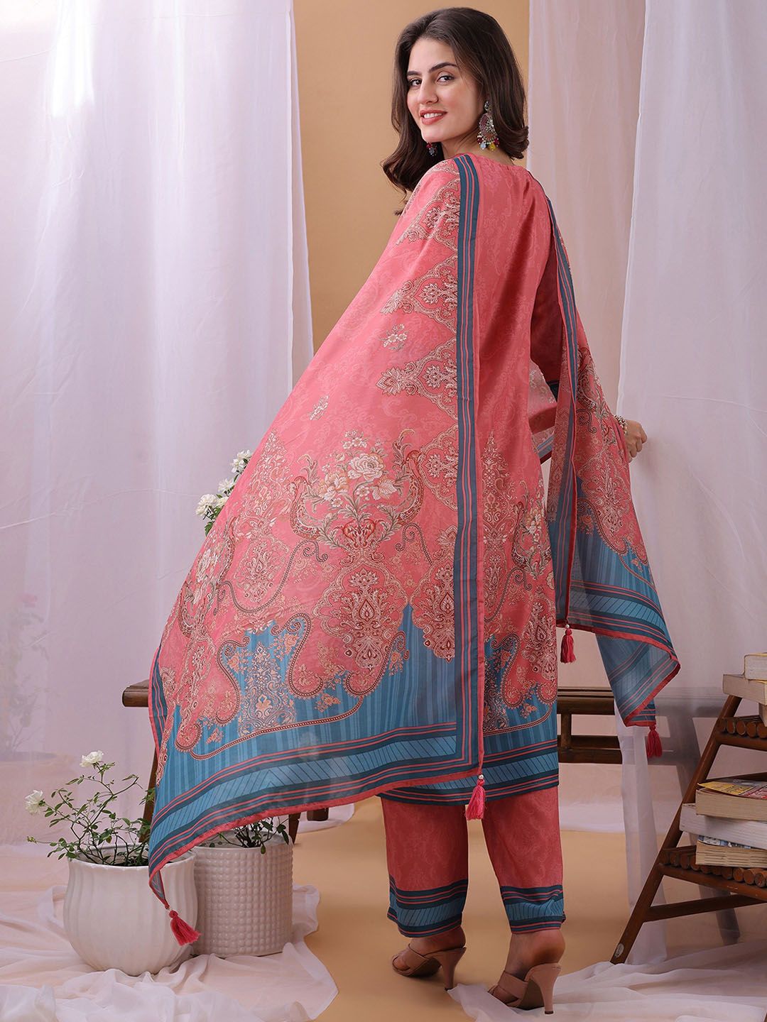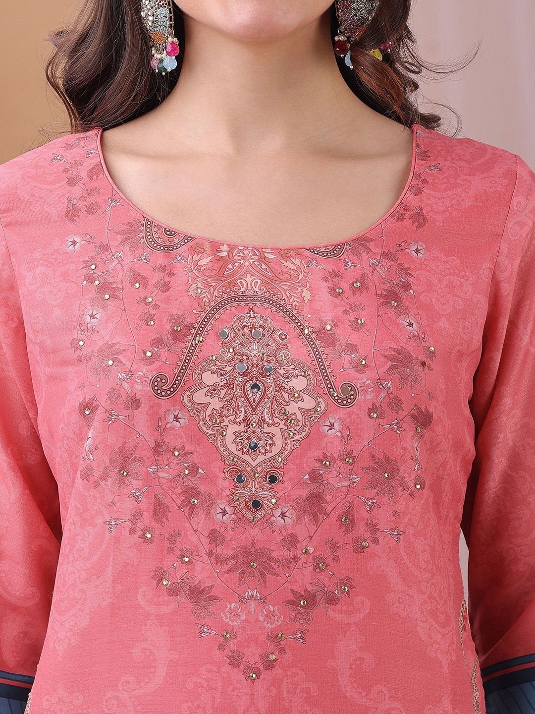 Peach-coloured embroidered Kurta with Trousers with dupatta