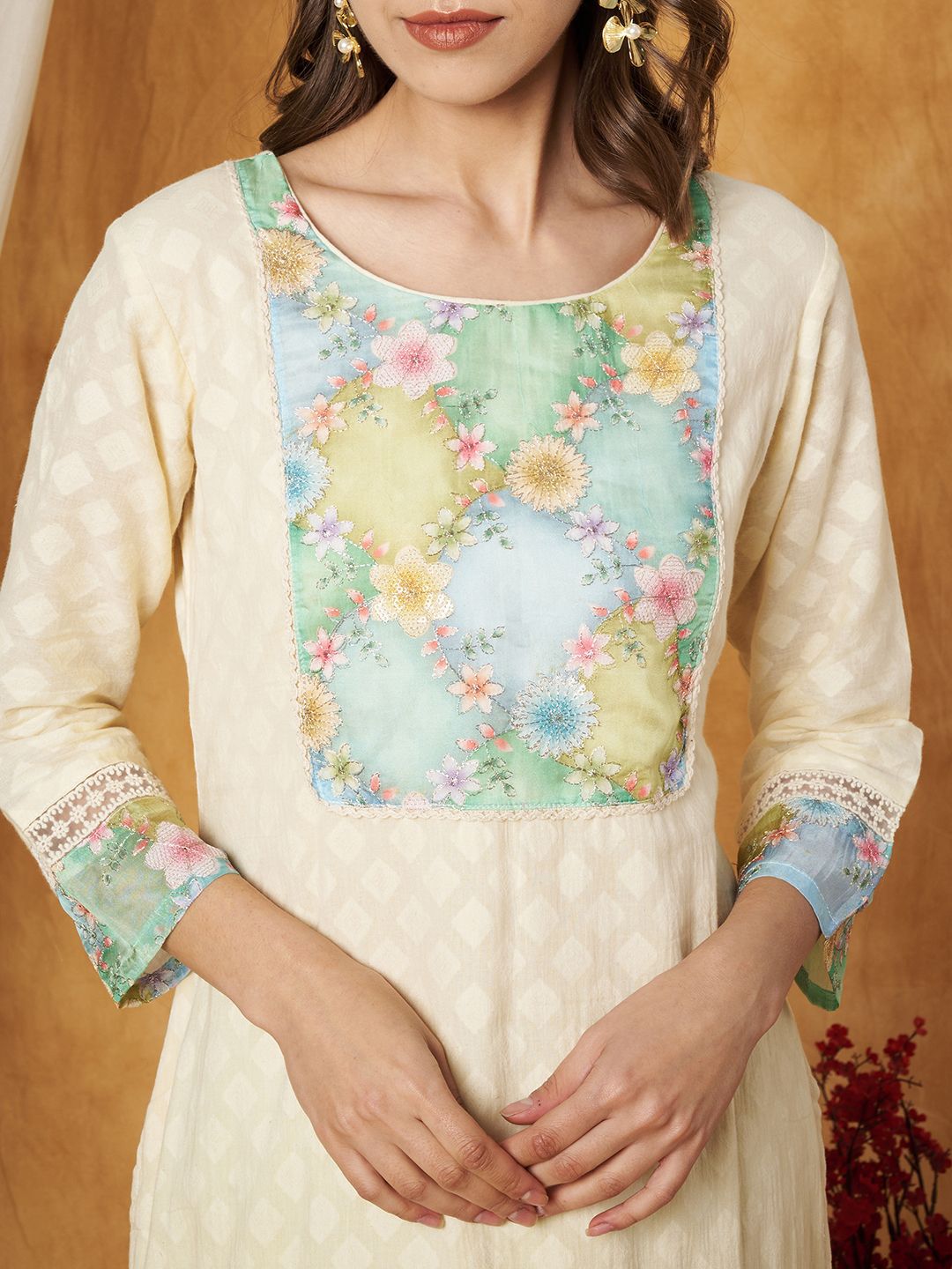 - Floral embroidered
