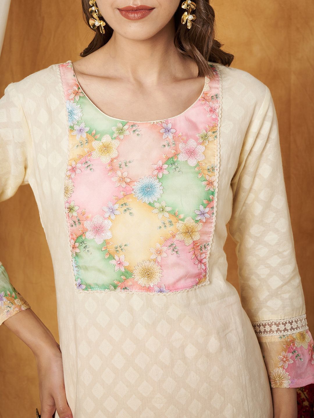 - Floral embroidered