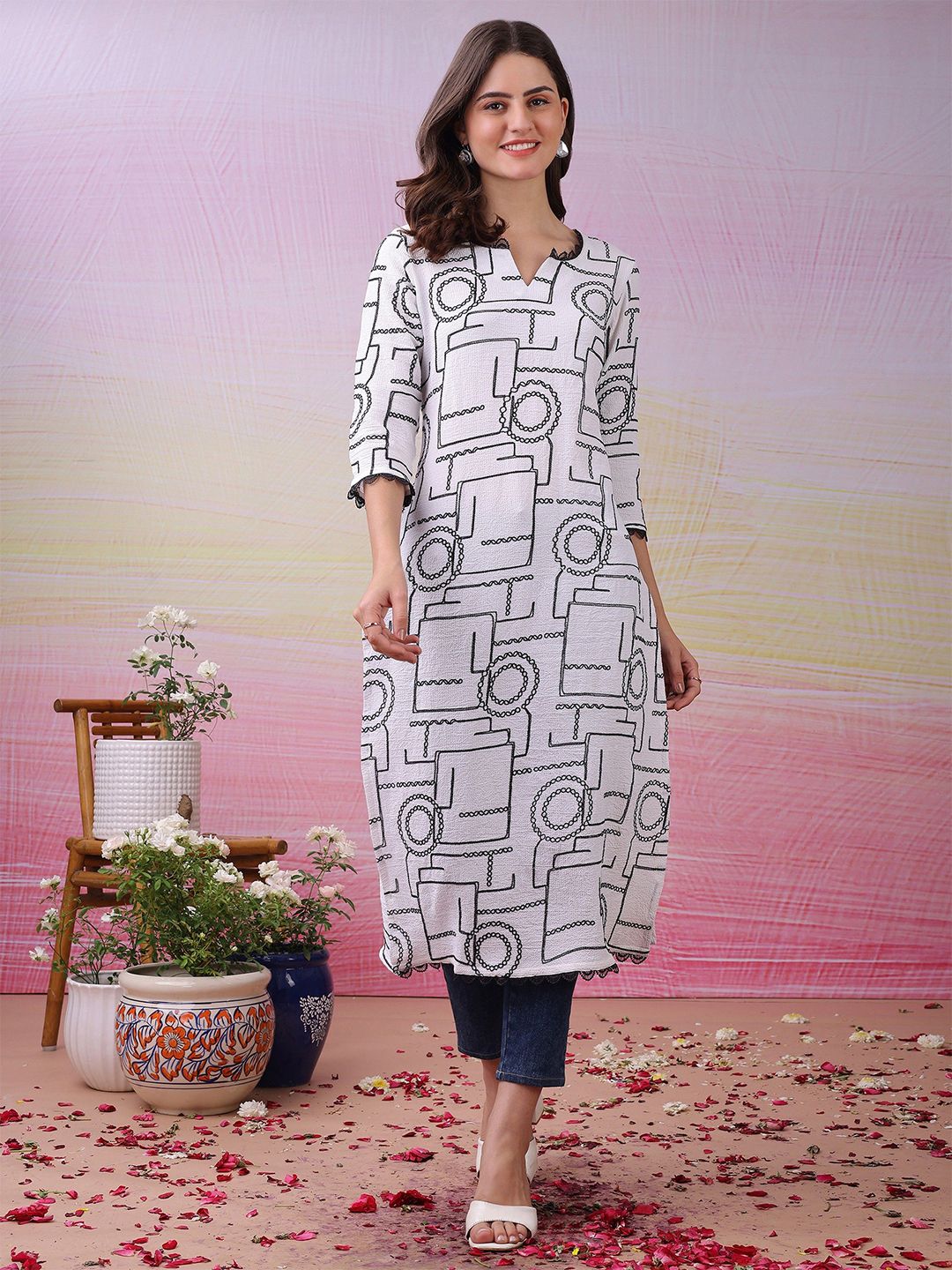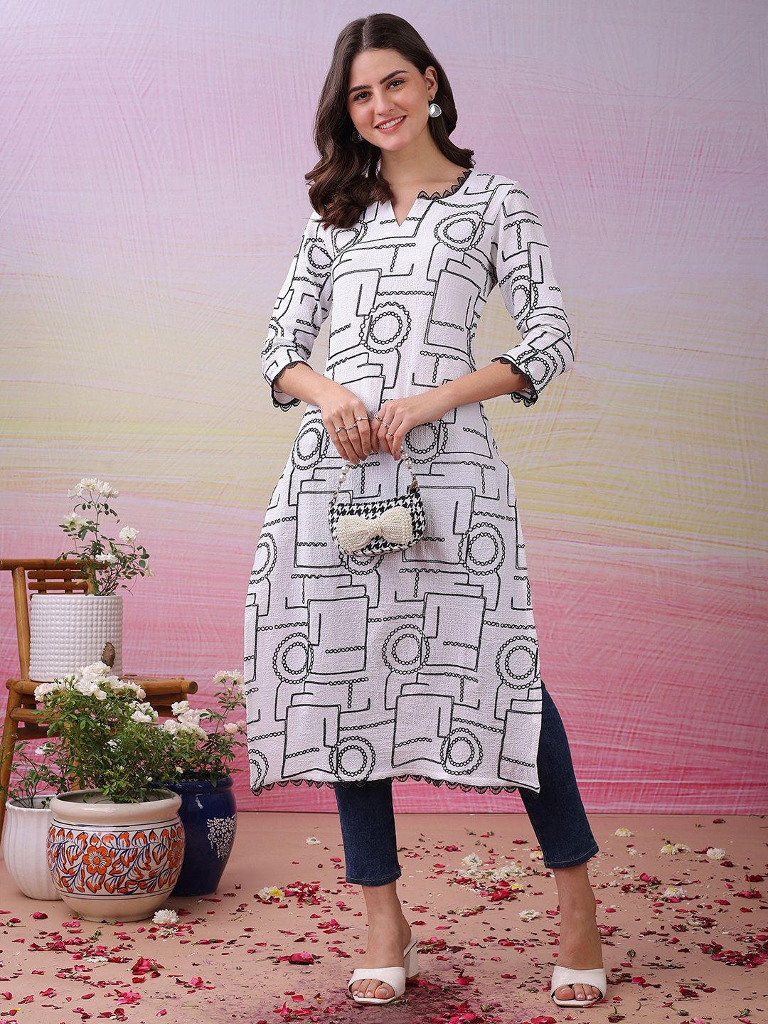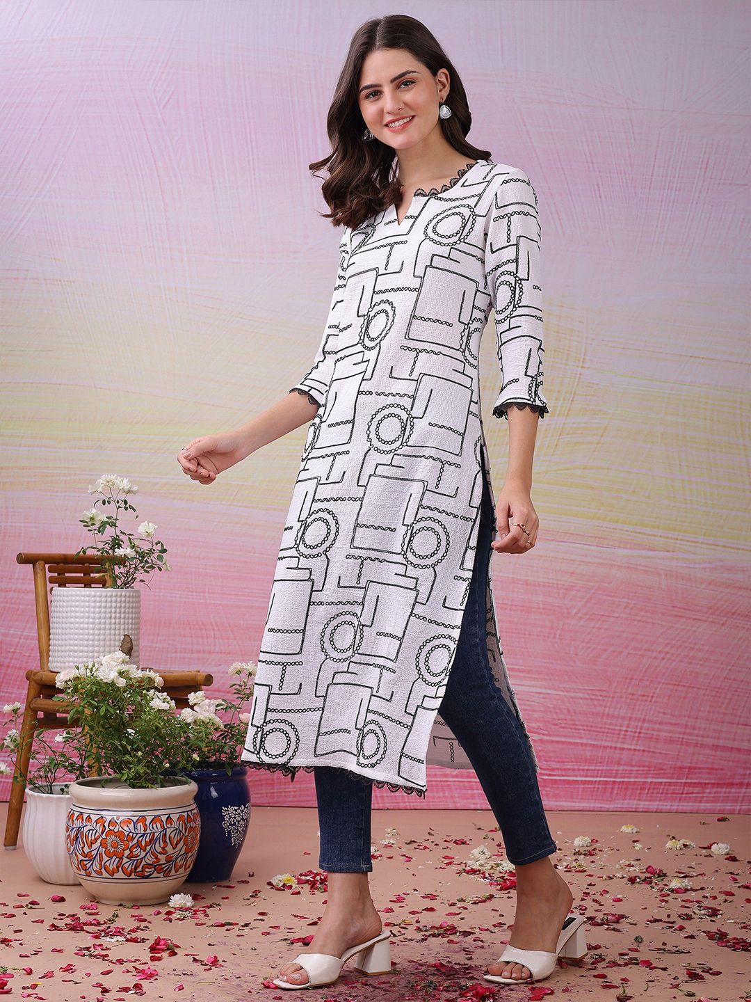 - Geometric embroidered