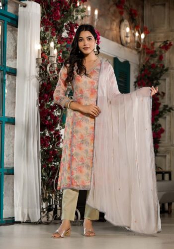 SKU: 10092Label Khoj Women Chinon print kurta, trouser and dupptta set