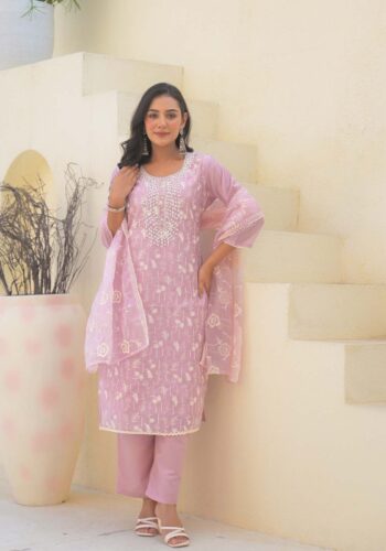 SKU: 10023Label Khoj Women Chinon Silk Embroidery Work Kurta & Bottom Set