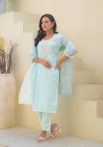 SKU: 9873Label Khoj Women cotton kurta, trouser and dupptta set