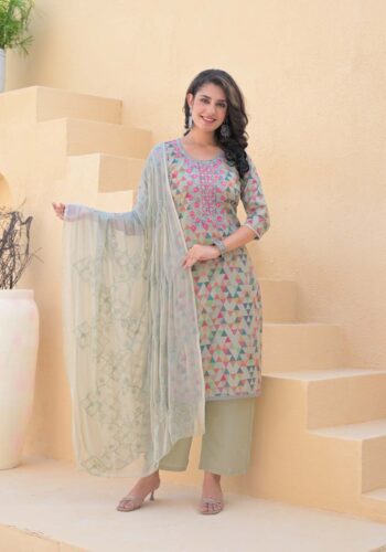 SKU: 10118ALabel Khoj Women cotton kurta, trouser and dupptta set