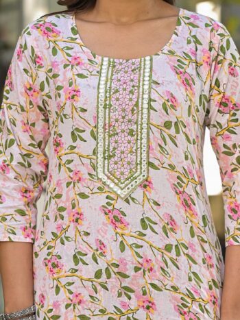 SKU: 9714ALabel Khoj Women Cotton Pink Floral Kurta