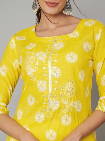 SKU: 9713DLabel Khoj Women Cotton Yellow Floral Kurta