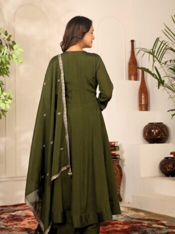 SKU: 10153ALabel khoj Chinon butti Anarkali kurta With Pant and Dupatta Set